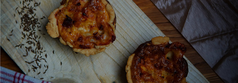 Käseküchlein mit Zwiebeln und Speck