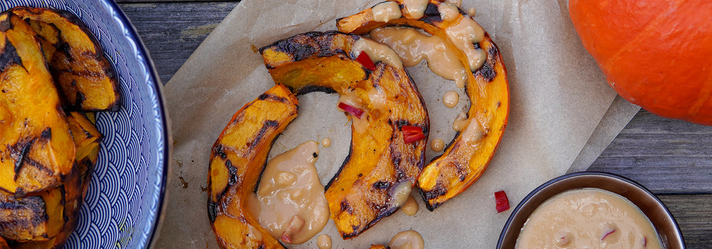 Kürbis gegrillt mit Erdnussbutter-Dip